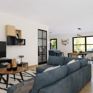 Le projet propose une maison contemporaine d’environ 90 m² habitables, conçue pour offrir confort et fonctionnalité :